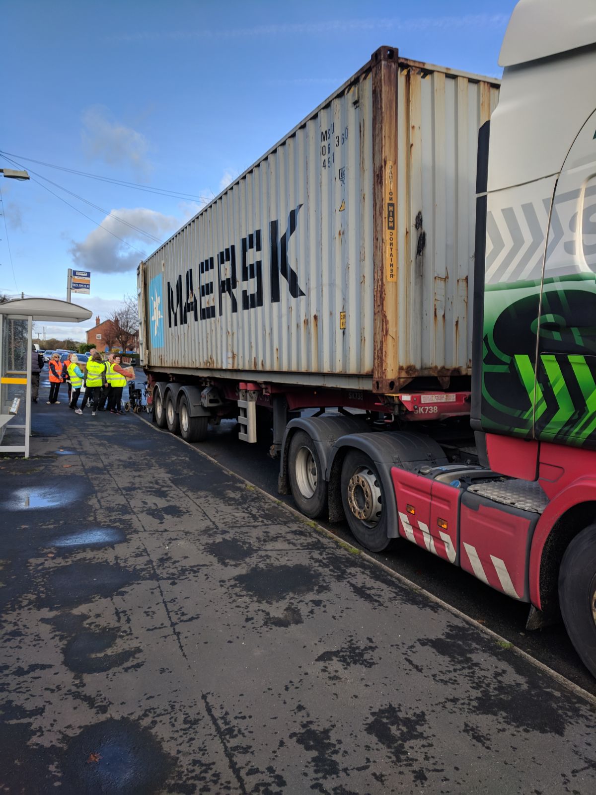 The container due to be loaded at Lostock on Saturday 11th November for shipping to refugees in Syria arrived early! Thus ensuring that the loading could begin as soon as the many volunteers arrived for the 9.30am start.